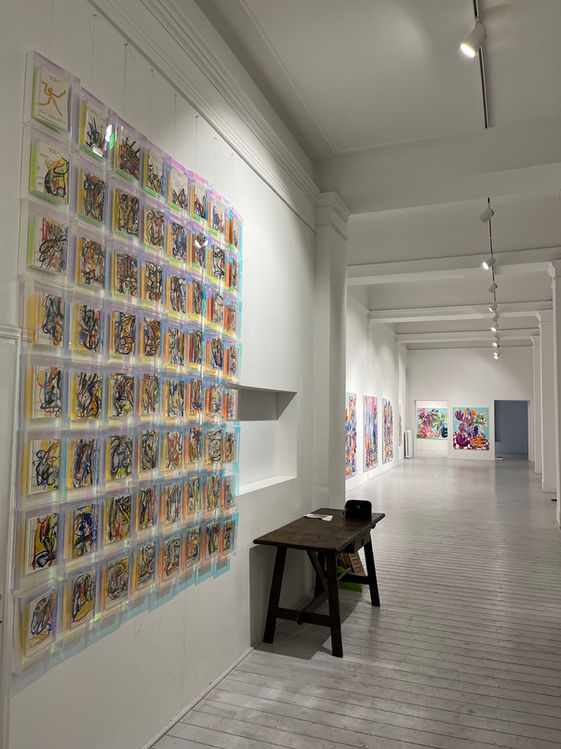 Mathias is known for his super colourful, childlike works. Big, fun, playful, expressive. His works are surprisingly harmonious, fractal even.